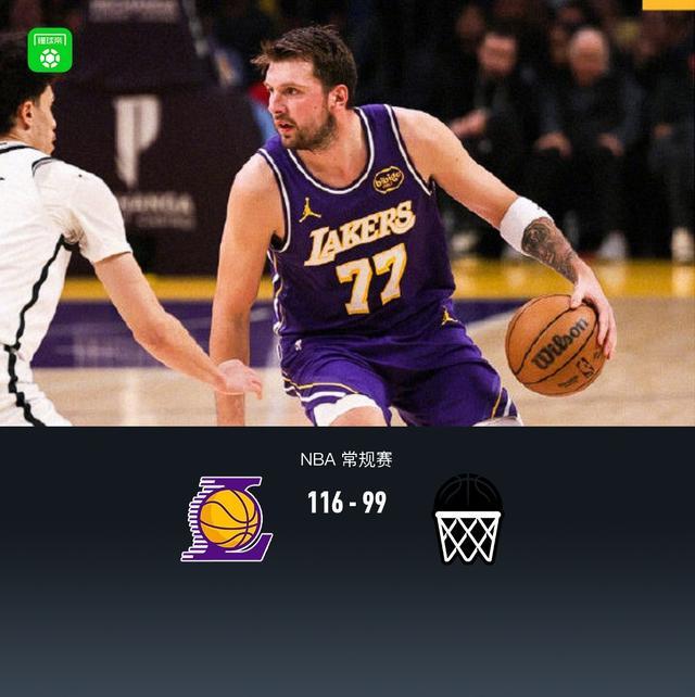 第四节,前半节湖人詹姆斯、里夫斯带队与篮网拉锯保持微弱领先,随后湖人东契奇回来联手里夫斯、詹姆斯逐渐将分差拉大至两位数,随后东契奇、里夫斯相继不讲理三分领先17分,比赛彻底失去悬念,最终湖人116-99战胜篮网。